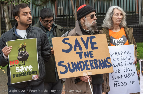 The UK branch of the National Committee to Protect Oil Gas & Mineral Resources, Bangladesh, supported by others including Fossil Free Newham were taking part in a global day of protest to save the Sunderbans, the world’s largest mangrove forest and a UNESCO World Heritage Site.