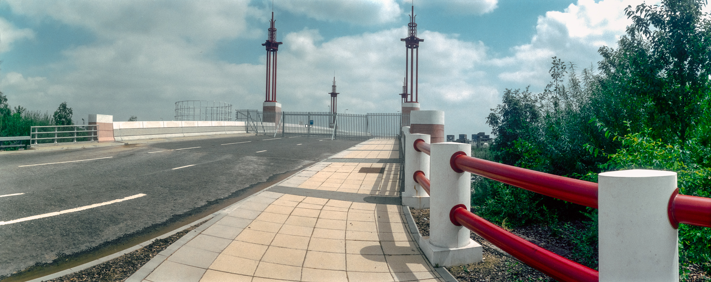 DLR – Beckton Extension: One of the earliest projects I had used a panoramic camera on was the building of the Docklands Light Railway Beckton extension which had been a part of a transport show at the Museum of London in 1992. I had made these pictures on black and white film – you can view these along with many other pictures in my Flickr album ‘1992 London Photos