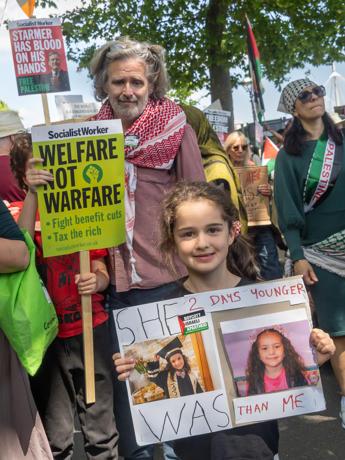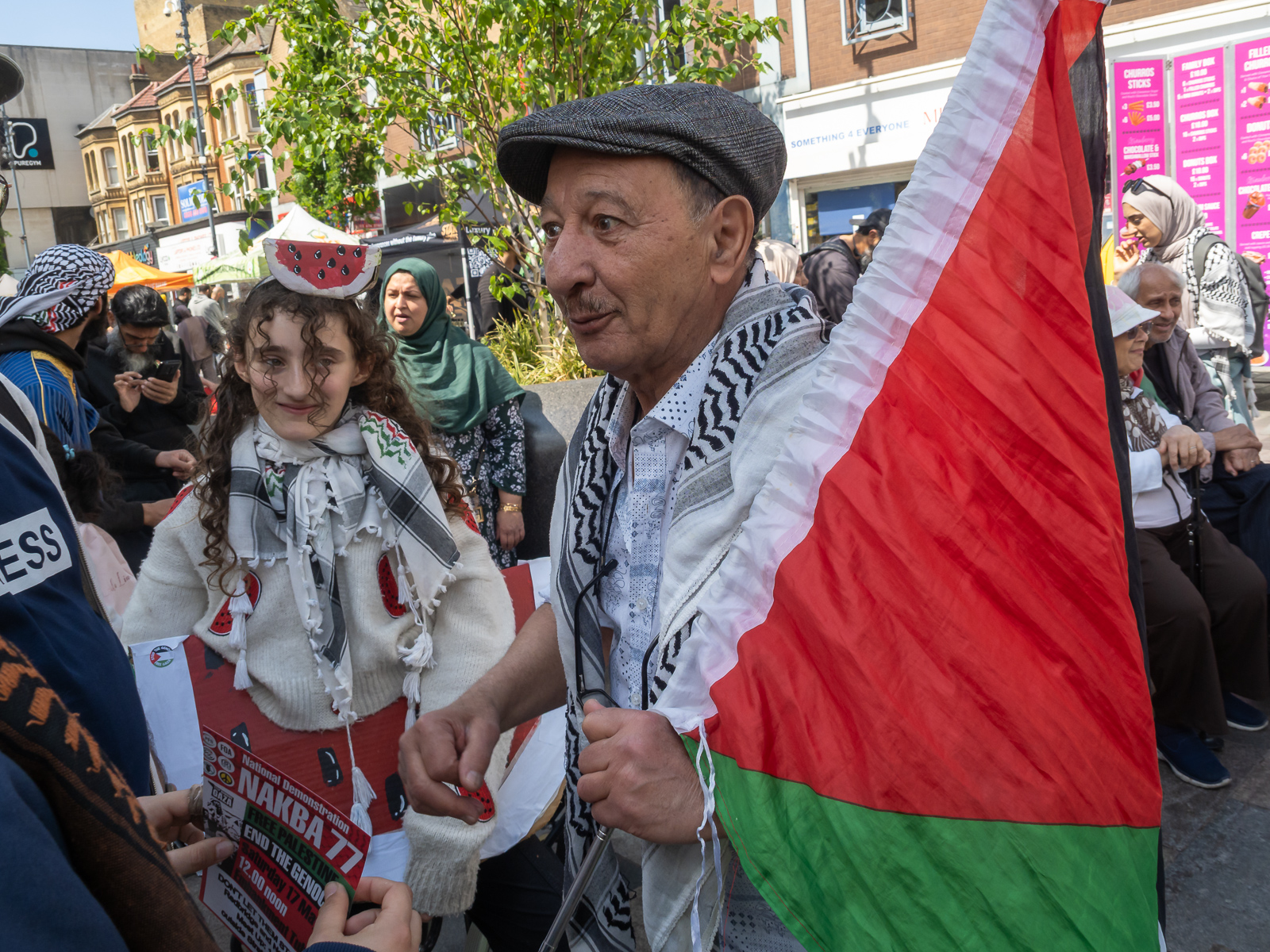 London, UK. 3 May 2025. Ilford. People from Newham and Redbridge march from Ilford and Forest Gate to a rally in Plashet Park, East Ham. They demand food, medicines and fuel be immediately supplied to Gaza where the whole population is being starved to death by the Israeli blockade while the world watches but does nothing. They call for an end to the attacks on the civilian population by Israeli forces and for negations for a peaceful future for Israel and Palestine. Among speakers was a man living in a Palestinian village when it was destroyed by Israel in 1947. Peter Marshall.